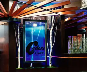 At Cedars Cafe, enjoy classic dishes with a twist. From early-morning breakfasts to indulgent six-ounce burgers and slow-roasted prime rib, all within an enchanting atmosphere highlighted by the glowing fiber optic night sky and warm cedar touches.